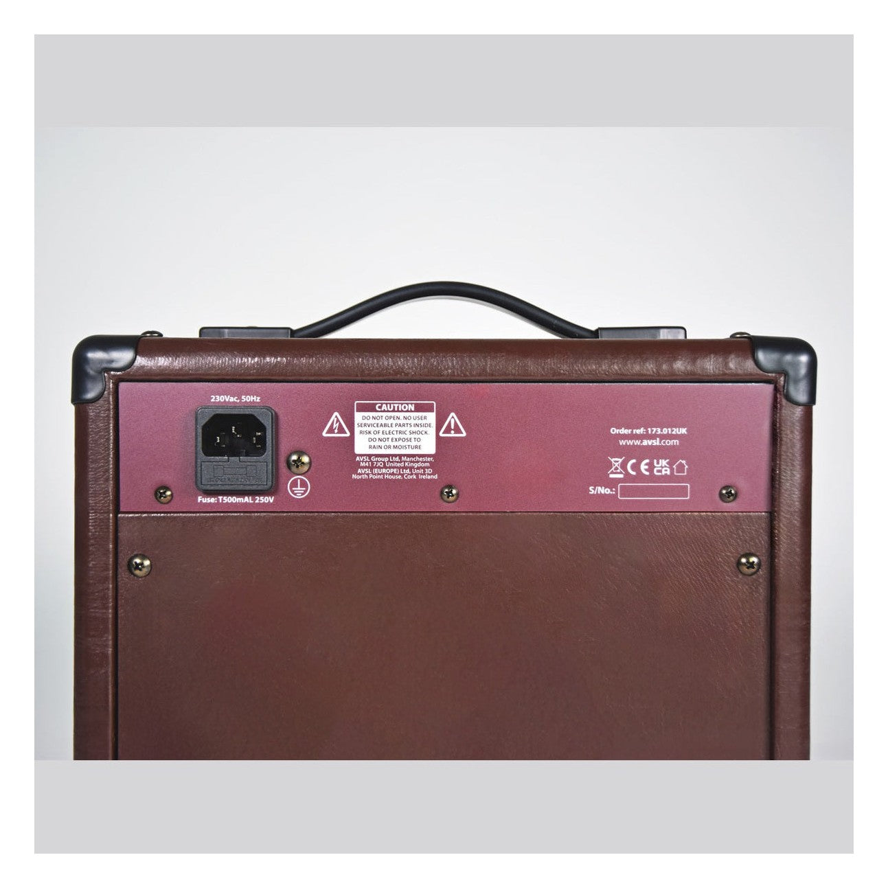 The Chord CA-15BT Acoustic Guitar Amplifier is a compact and versatile 15W RMS combo amplifier, specifically designed for electro-acoustic guitars. Engineered to deliver clear, uncoloured acoustic tones, this amplifier is perfect for practice, home recording, and small intimate performances. Its durable brown vinyl covering and classic basket-weave speaker cloth give it a timeless aesthetic, while the robust closed-back speaker cabinet ensures optimal sound projection and a full-range response.
