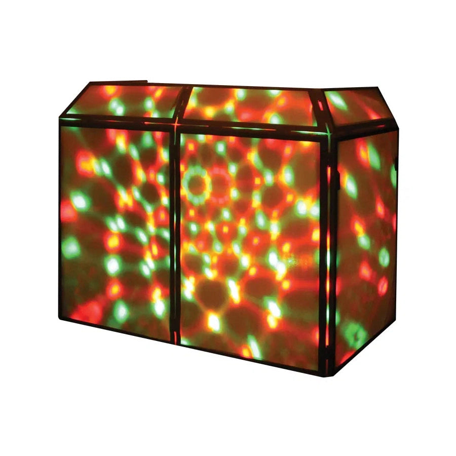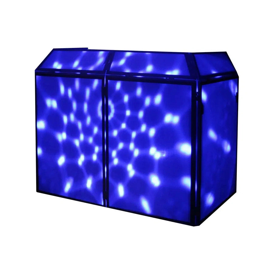 Both black and white lycra covers are supplied, giving DJs the flexibility to adapt the booth to different themes and event styles. The lycra is hand-washable for repeated use. The booth is also compatible with optional LED starcloths and the Equinox overhead kit, providing creative options for DJs wanting to enhance their performance environment.