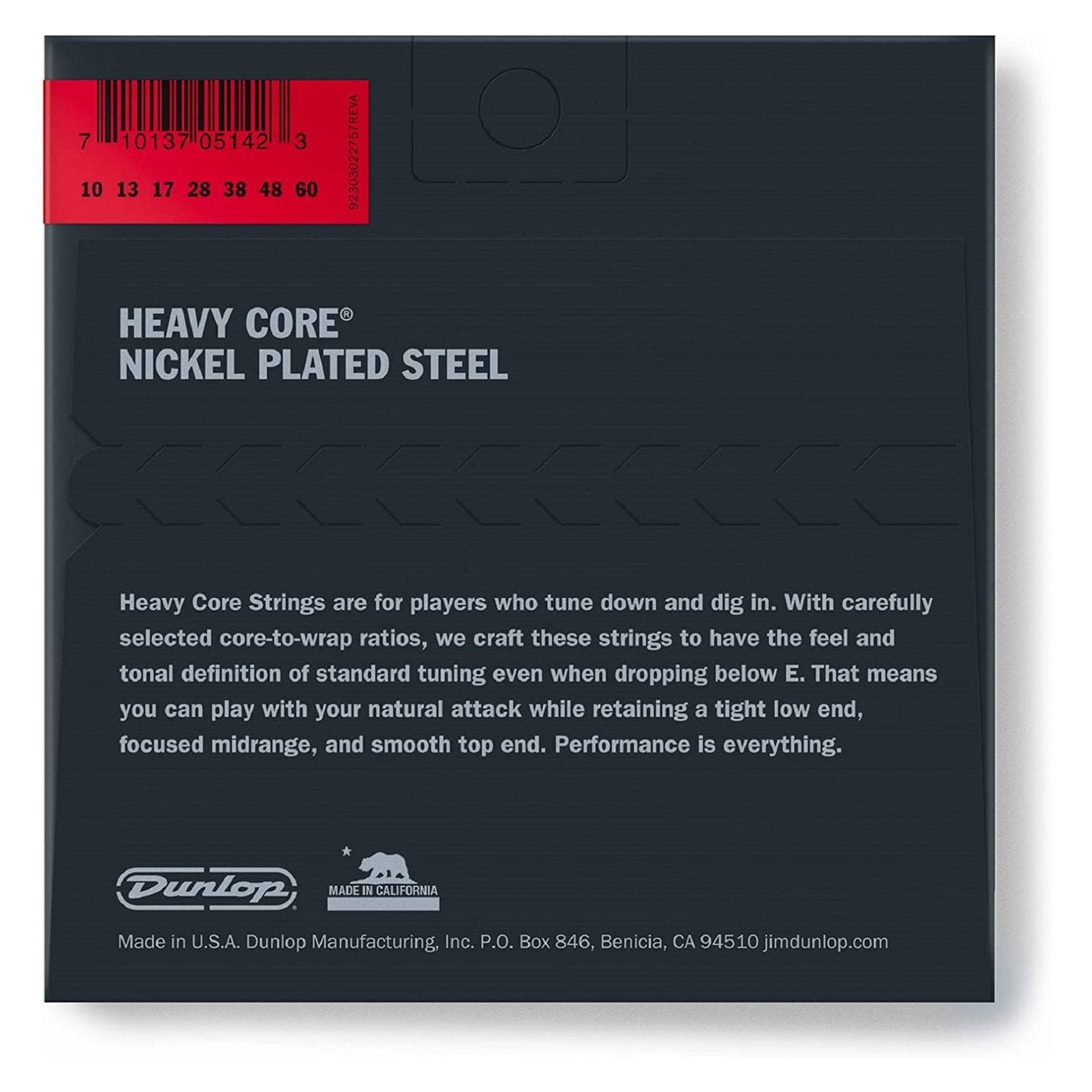 Dunlop Heavy Core strings are specially engineered for guitarists who use dropped or lowered tunings. This 7-string set, with a 10-60 gauge combination, is designed with a unique core wire and proprietary wrap ratios. This construction allows players to maintain the necessary tension and tonal focus when tuning below standard, providing a tight low end, a focused midrange, and a smooth top-end whether playing clean or distorted.