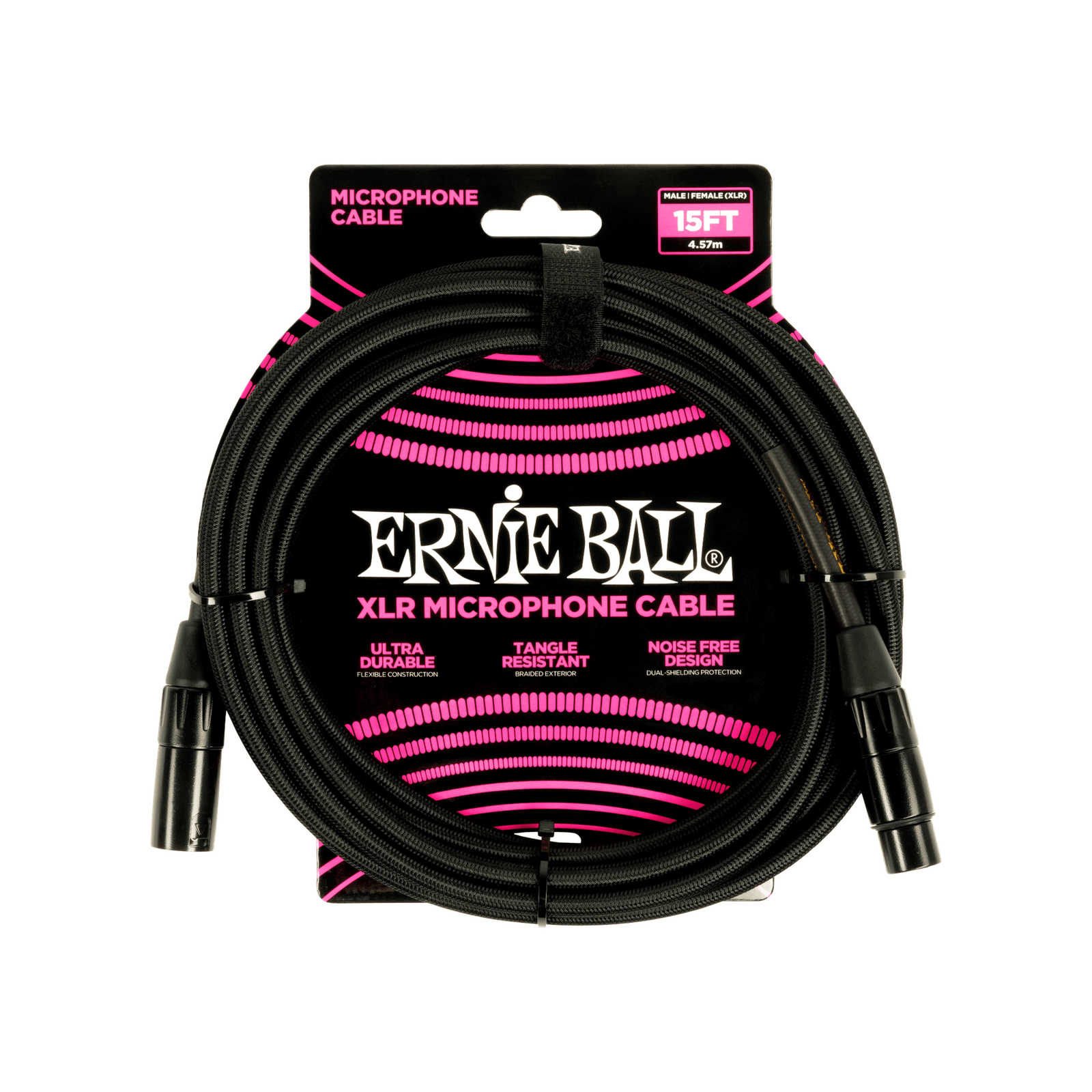 KEY FEATURES: Ernie Ball XLR Male/Female Braided Microphone Cable (Black, 4.5m)