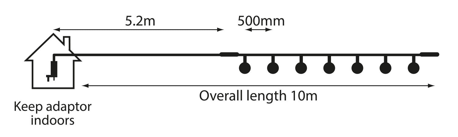 Whether draped around a marquee at a wedding, strung across a garden for a summer party or used to light up a festival camping area, these warm white festoon lights add an instantly welcoming and atmospheric touch to any outdoor setting. The 50cm lamp spacing and 10-metre overall length make them well suited to a wide range of layouts and configurations, and their IP44 weatherproof rating means they can be left outside with confidence in typical UK weather conditions — provided the power adaptor is kept indoors.
