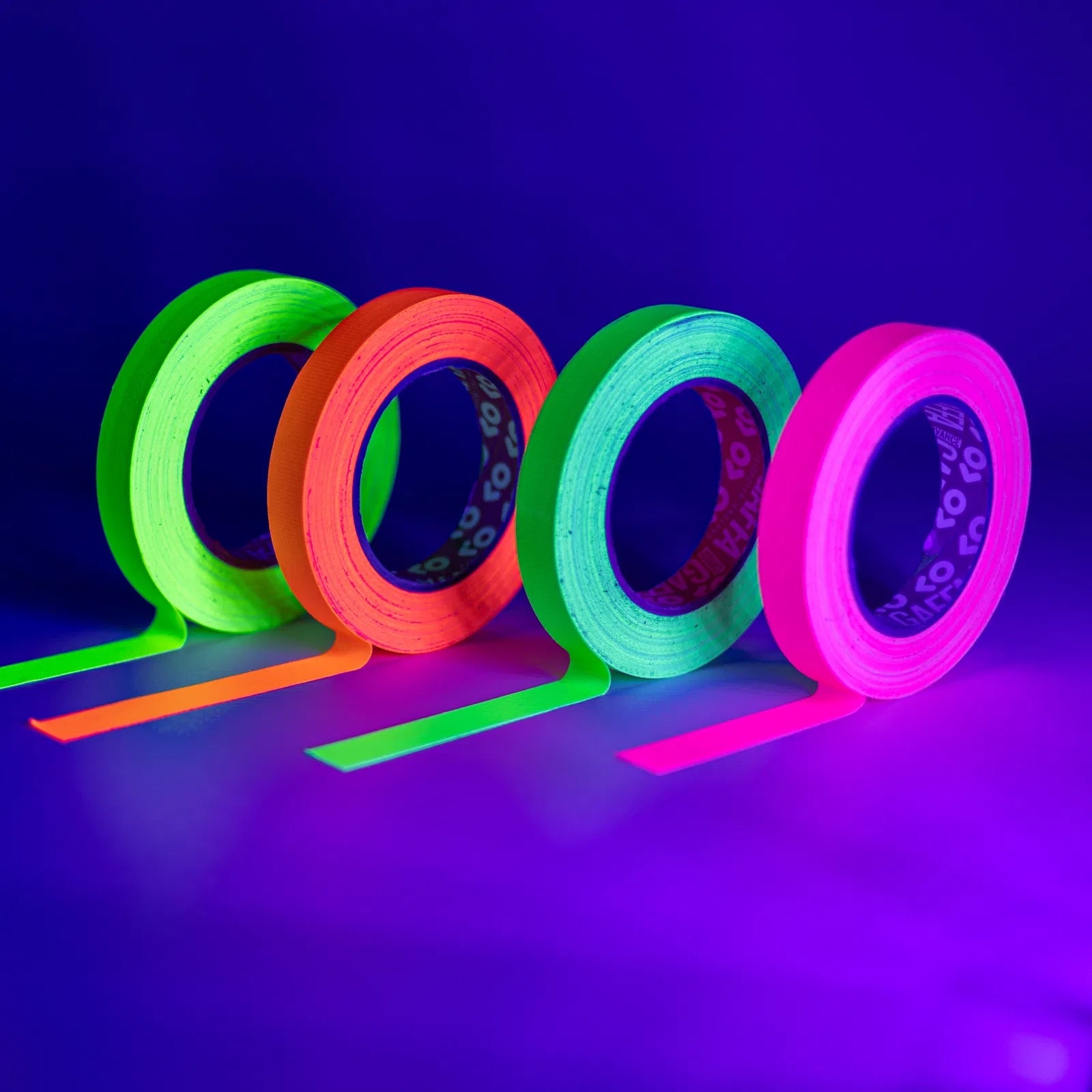 High Visibility Fluorescent Pink UV Glow Cloth Tape For Professional Stage, Event & Entertainment Use – Advance Gaffa AT215 Fluorescent Pink Cloth Tape 19mm x 25m.