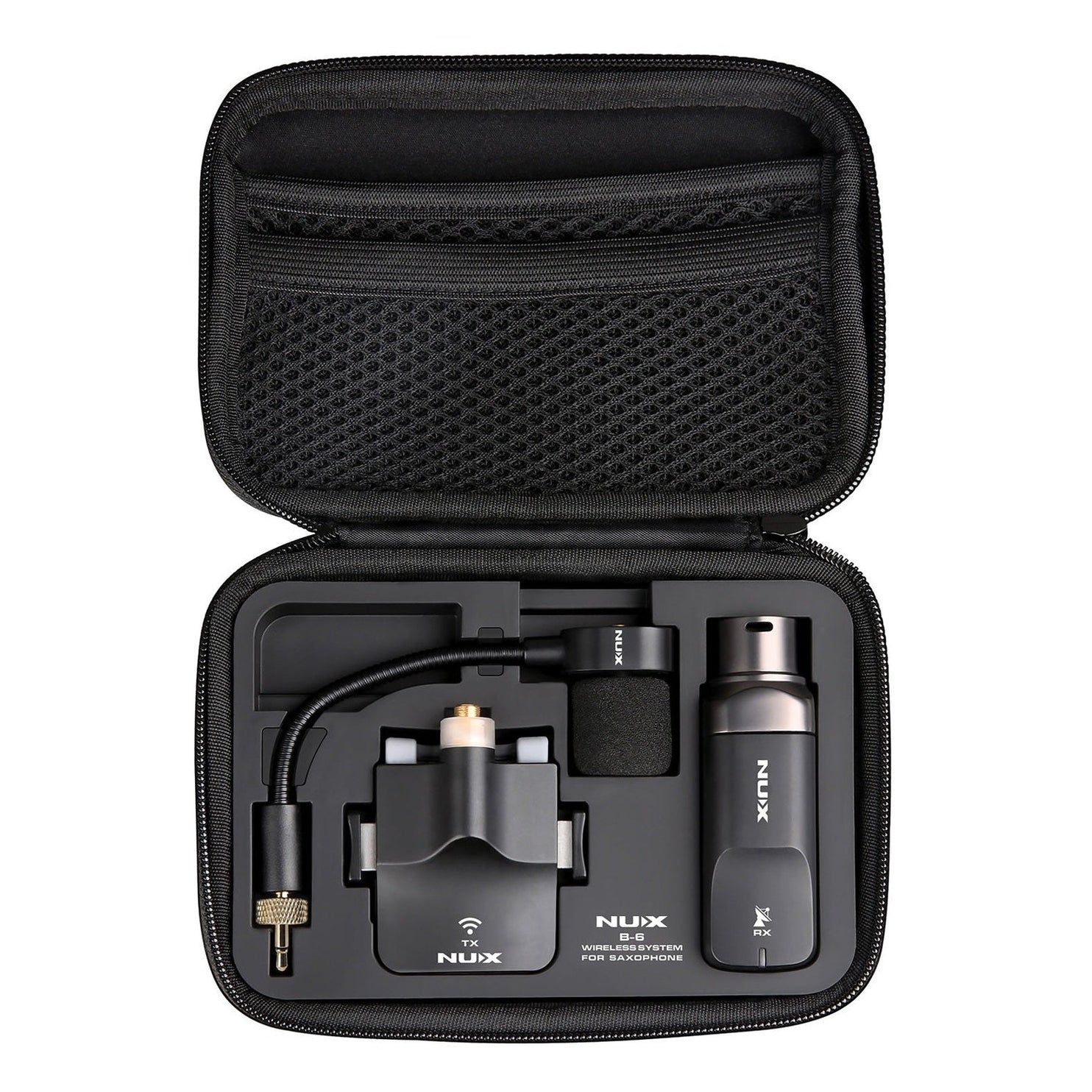 The NUX B-6 Wireless Saxophone Microphone System is a compact, rechargeable, and studio-quality wireless system built specifically for saxophonists. Using 2.4GHz digital transmission, it delivers crystal-clear audio with ultra-low latency — making it perfect for both stage and studio applications.