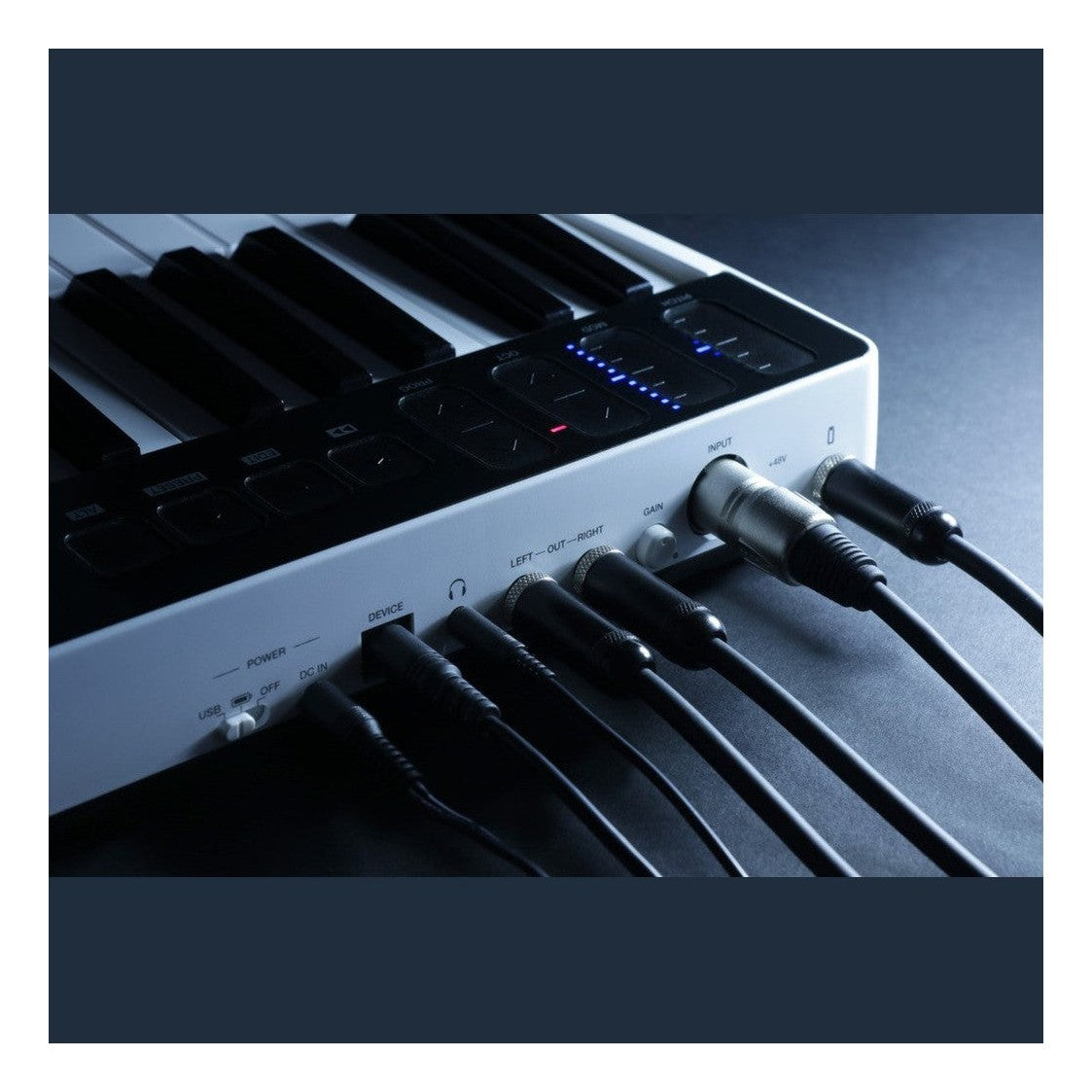 • Compact Design: Full-sized keys in a portable footprint for travel and small studios