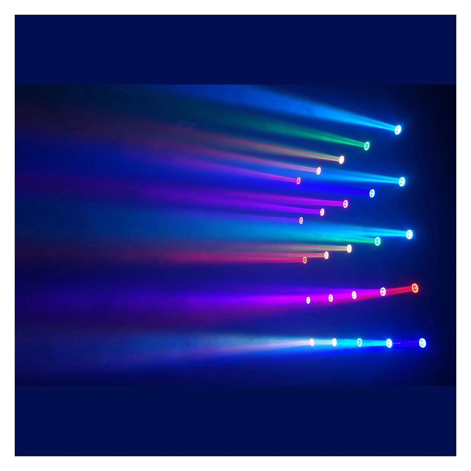 The Fusion Orbit MKII isn’t just about power – it’s about presence. The central 60W beam LED creates razor-sharp shafts of light, while the 12-segment RGB LED ring offers captivating chases and colour shifts. The result is a multi-layered lighting effect that adds depth and motion to any show.