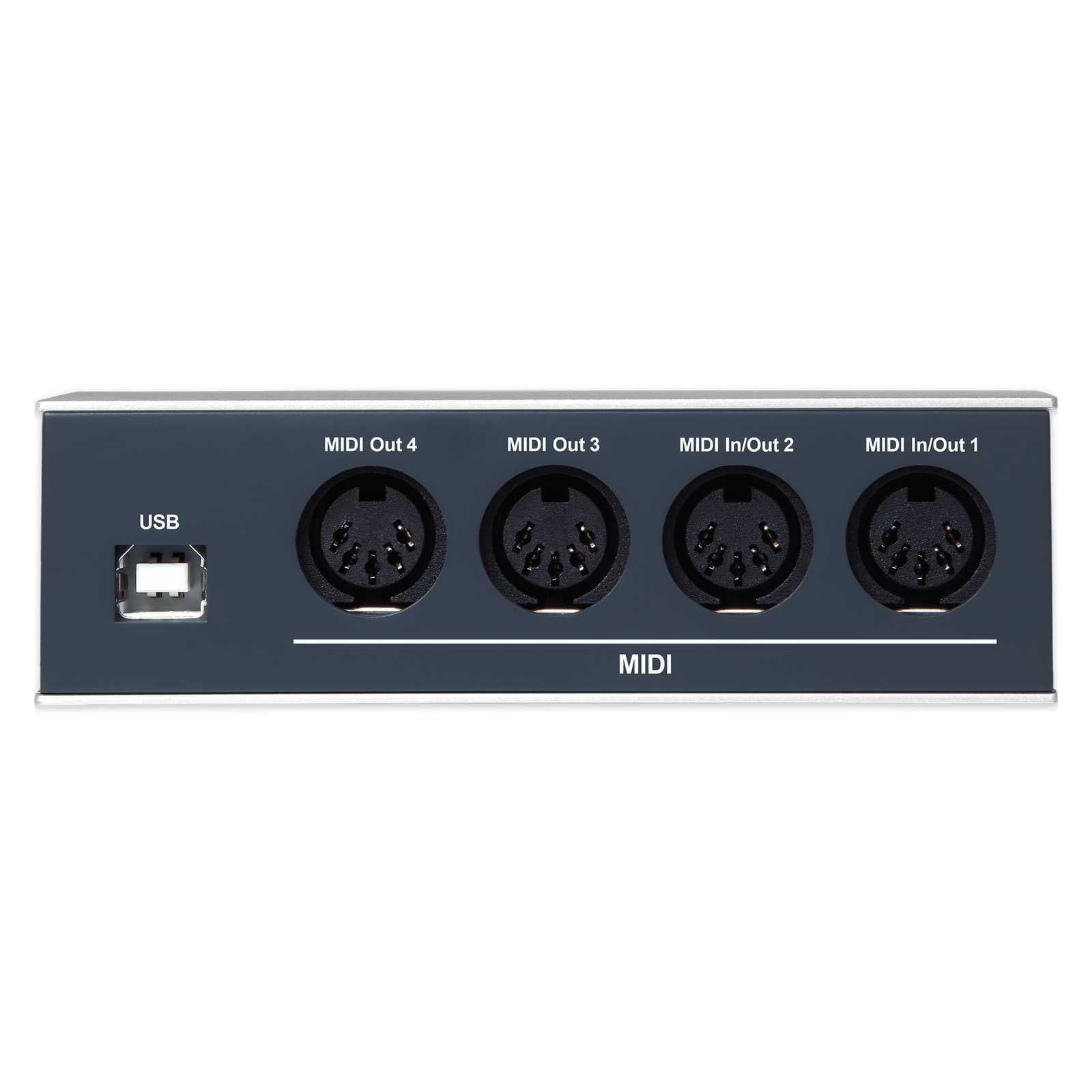 A compact 4-port USB MIDI interface with automatic port detection.