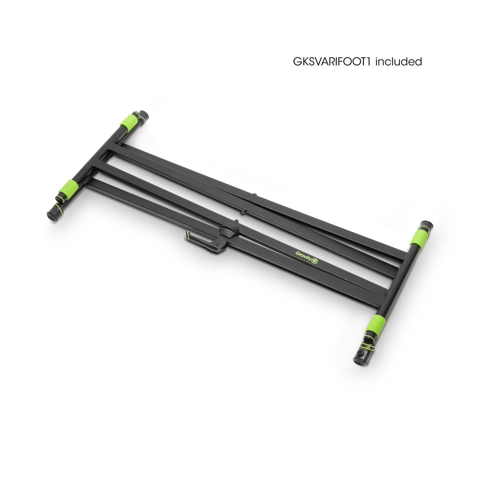 Designed with a double X support, the Gravity KSX 2 delivers rock-solid stability, ensuring your instrument remains secure even during energetic performances. Its height can be effortlessly adjusted from 100 mm up to 900 mm (10 cm to 90 cm) using a smooth, quick-lock clamping lever, allowing you to find your perfect playing position with ease. Reinforced junctures throughout the black powder-coated steel frame provide maximum durability, while long-lasting non-slip end caps ensure your keyboard stays put and protect floor surfaces from scratches. For uneven stages or floors, the included VARI-FOOT® levelling foot ensures a perfectly stable setup every time.