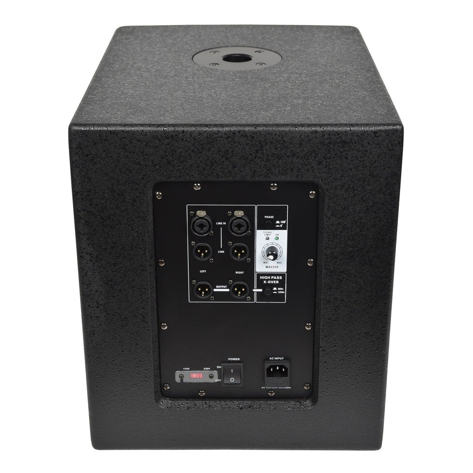 - Controls: Output level, phase switch, and high-pass crossover (for tops)
