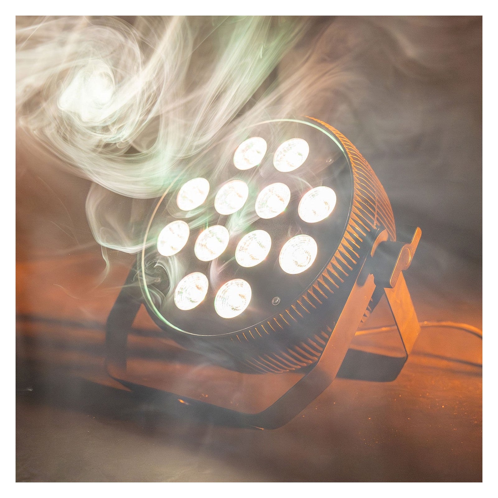 - 12 × 12 W RGBWA+UV LEDs: Six-colour mixing with UV included