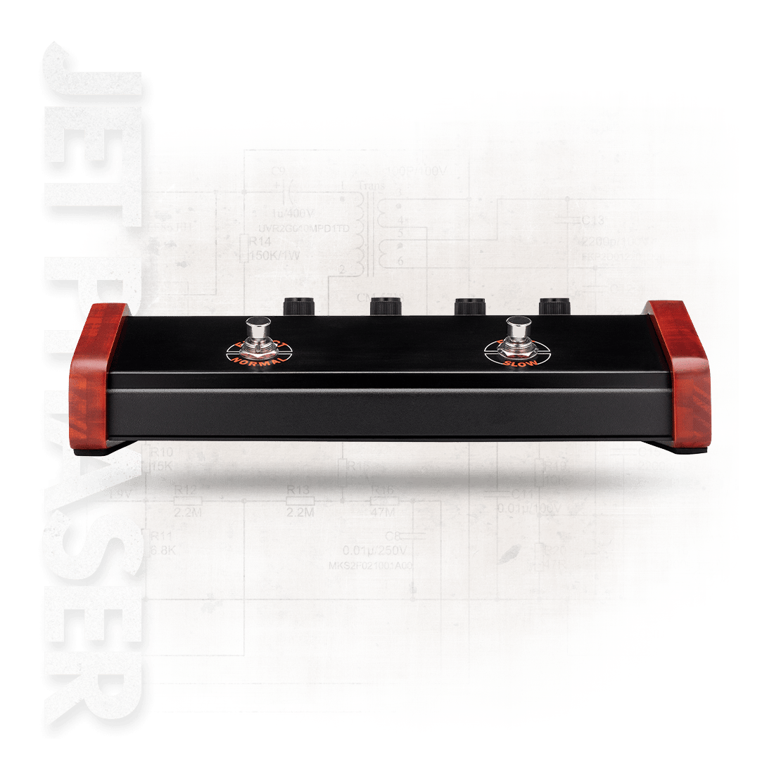 You control Level, Mode, Resonance, and Slow Rate, with a Fast/Slow footswitch to dynamically change speed on the fly. The Jet Level control (active in fuzz modes) adjusts the output of the fuzz signal, offering further tonal shaping between bright and dark textures.
