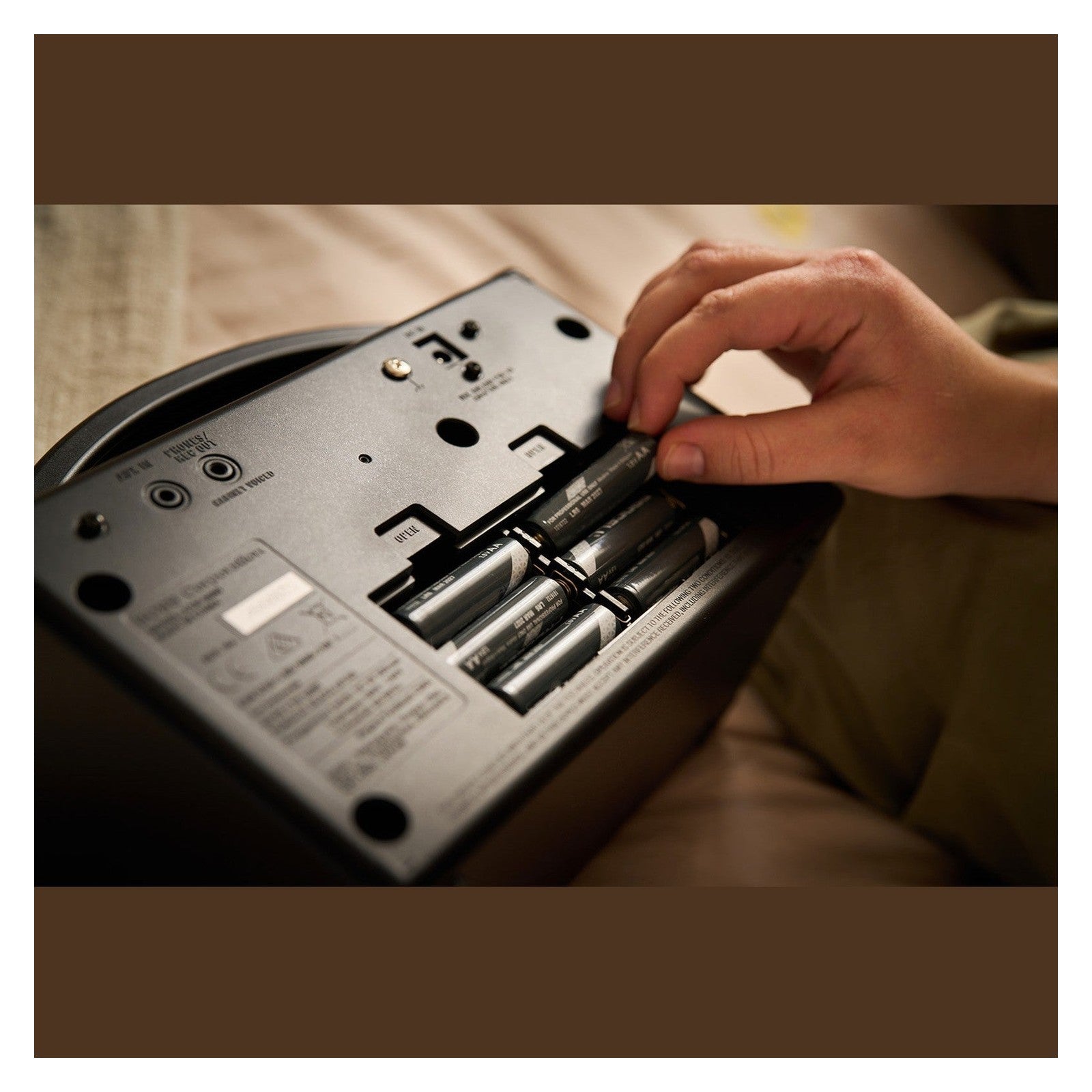• Battery or AC Power: Runs on six AA batteries for up to 9 hours or an optional AC adapter.