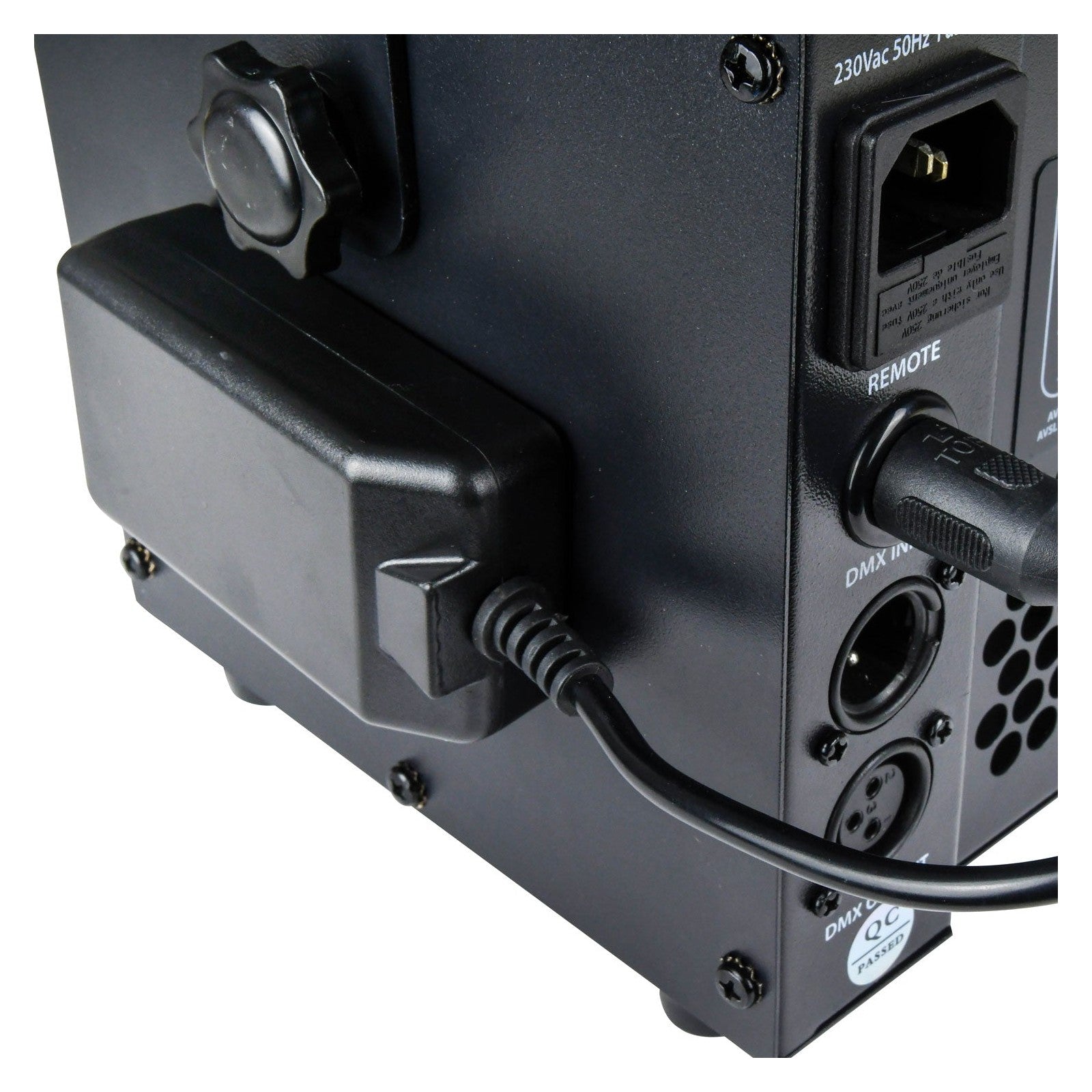 - Adjustable control modes – Set haze output from the unit, via included RF remote or DMX control